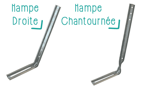 Droites ou chantournées, elle s'utilisent en complément des crochets et doivent être installées directement sur les chevrons (pour les hampes droites) ou sur les côtés (pour les hampes chantournées).