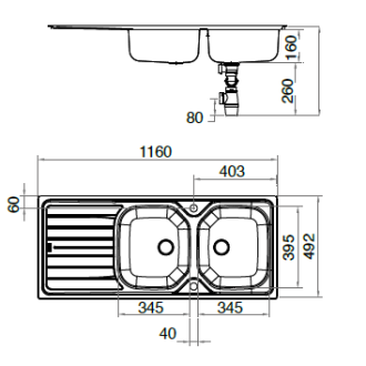 Évier inox double à encastrer franke - ren 621 2c/1egt - 1160x500 mm - 898311