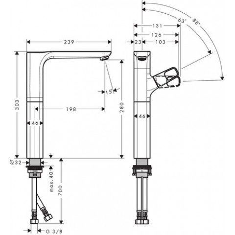 Mitigeur de lavabo HANSGROHE AXOR Urquiola surélevé pour vasque libre, bonde à écoulement libre nickel brossé - 11035820
