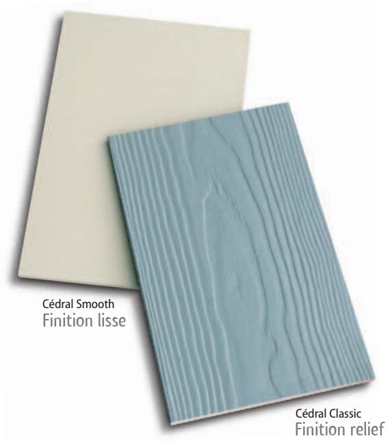 Cédral est un revêtement de façade structuré avec un veinage "cèdre" traditionnel (finition relief) ou lisse plus moderne (finition lisse), qui se pose horizontalement ou verticalement et qui se décline en 21 coloris esthétiques.