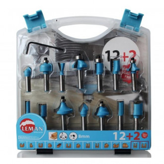 Fraise de défonceuse à plaquettes carbure queue de 8 mm coffret de 14