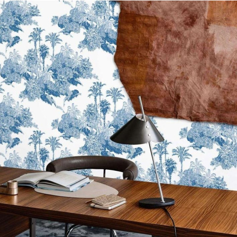 Papier peint Toile de Jouy Palmier bleu - TOILE BLUE