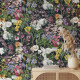 Magnifique papier peint floral botanique vintage au fond sombre. Un dessin plein de vie, décliné en de nombreuses couleurs, toutes plus gaies les unes que les autres. Il est parfait pour toutes les pièces de votre maison !