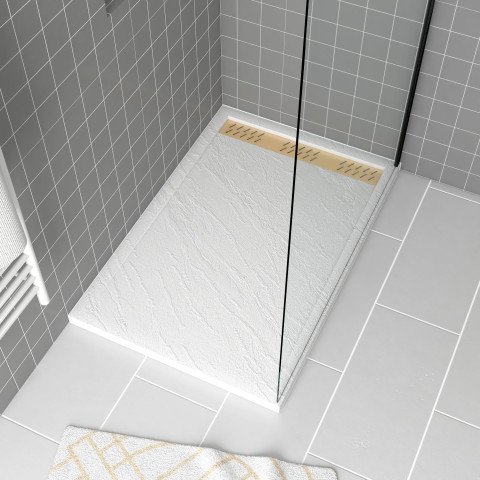 Cet ensemble Receveur Blanc, Effet Pierre, s'accordera parfaitement à l'ambiance de votre espace de douche.