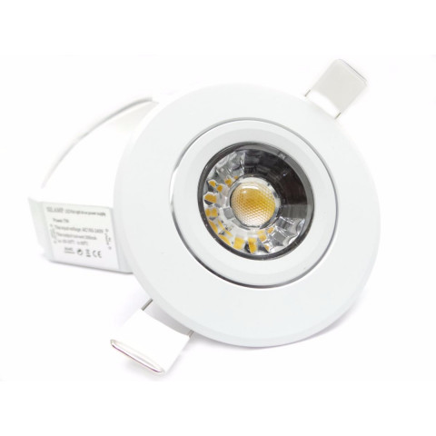 Spot LED COB Encastrable d une puissance de 7W équipé de la dernière technologie de faisceau LED COB, optique orientable avec un angle d éclairage de 80 déployant une luminosité de 700 lumens.