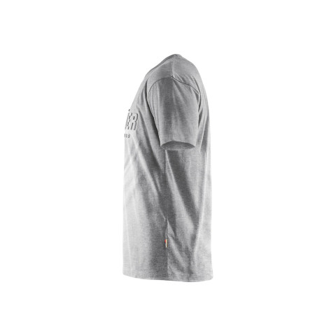 T-shirt Blaklader gris chiné en coton avec imprimé 3D "Blåkläder" sur la poitrine. T-shirt pouvant être porté au travail comme en dehors.